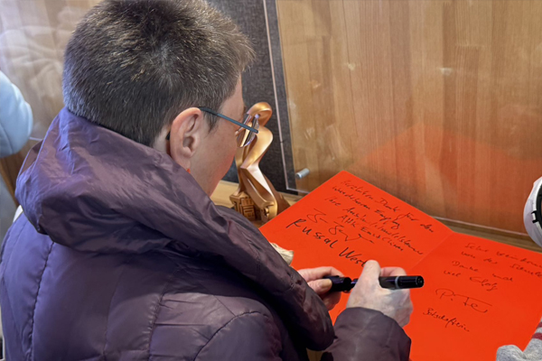 Sie ermutigte die Schüler, weiterhin fleißig Deutsch zu lernen, und schrieb folgende Worte in das Gästebuch der neunten Mittelschule Qingdao: „Ich bin von dieser Schule sehr beeindruckt! Vielen Dank und viel Erfolg!“. Diese kurzen Worte spiegeln ihre hohe Anerkennung für die Errungenschaften der Schule sowie ihre herzlichen Wünsche für die Zukunft der Schüler wider.