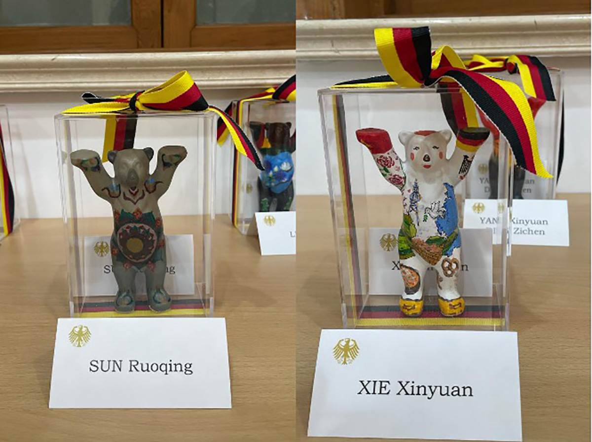 Das Kunstprojekt richtete sich an alle DSD-Schulen in Ostchina. Unter dem Motto „Buddy Bär“ gestalteten die Teilnehmenden Werke zur deutsch-chinesischen Freundschaft, zum kulturellen Austausch und zur internationalen Zusammenarbeit. Fünf Schülerinnen unserer Klasse konnten sich nach mehreren Auswahlrunden erfolgreich durchsetzen.
