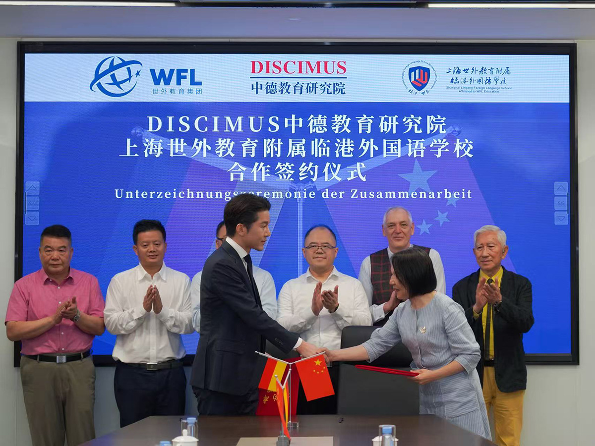 Am 18. Juni 2025 wurde beim Shanghai World Foreign Language Education Group feierlich die Kooperationsvereinbarung zwischen der Shanghai World Foreign Language School Lingang und dem DISCIMUS Deutsch-Chinesisches Institut für Bildung unterzeichnet. Damit beginnt eine strategische Partnerschaft im Bereich deutsch-chinesischer Bildungszusammenarbeit – mit besonderem Fokus auf die gemeinsame Förderung von Schülerinnen und Schülern für den Übergang in deutsche Gymnasien und Hochschulen.