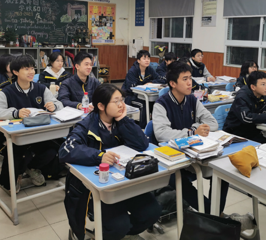 Die Chongqing Foreign Language School, offiziell „Angegliederte Foreign Language School der Sichuan International Studies University“ gehört zu den renommiertesten weiterführenden Gymnasien Chinas. Die Chongqing Foreign Language School wurde 1963 gegründet und war eine der ersten sieben spezialisierten Fremdsprachenschulen in China. Zugleich war sie damals die einzige weiterführende Schule mit sprachlichem Schwerpunkt in der gesamten südwestlichen Region des Landes. Bereits 1981 wurde sie als eine der ersten „Schwerpunkt-Gymnasien“ der Provinz Sichuan eingestuft. Im Jahr 2001 wurde sie vom chinesischen Bildungsministerium als eine von nur dreizehn Schulen landesweit bestimmt, deren 20 % der Abiturientinnen und Abiturienten eine Empfehlung für das Hochschulstudium erhalten können.